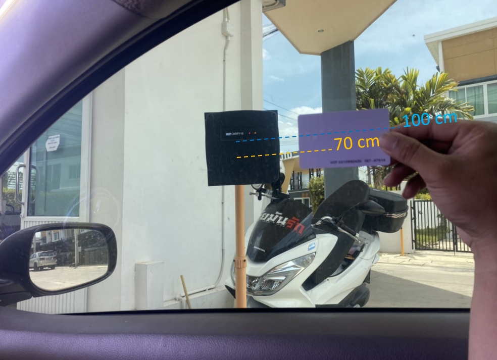 1.2 บัตร 1.8 for longer ให้ระยะอ่านบัตร 80-100cm หากผู้ใช้งานจอดรถห่างจากเครื่องอ่านประมาณ 50-70cm ผู้ใช้งานก็จะทาบบัตรได้โดยไม่ต้องลดกระจก แอดมินพบว่ามีผู้ใช้งานประมาณ 80% ที่ใช้บัตรผ่านระยะ 80-100cm ทาบบัตรโดยไม่ต้องลดกระจก