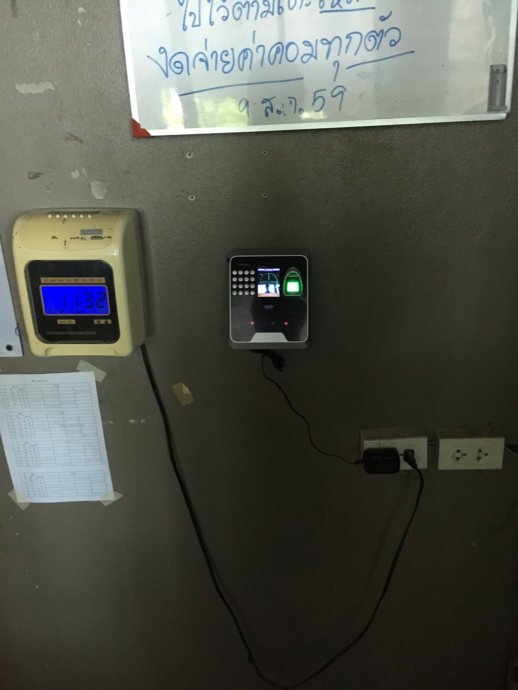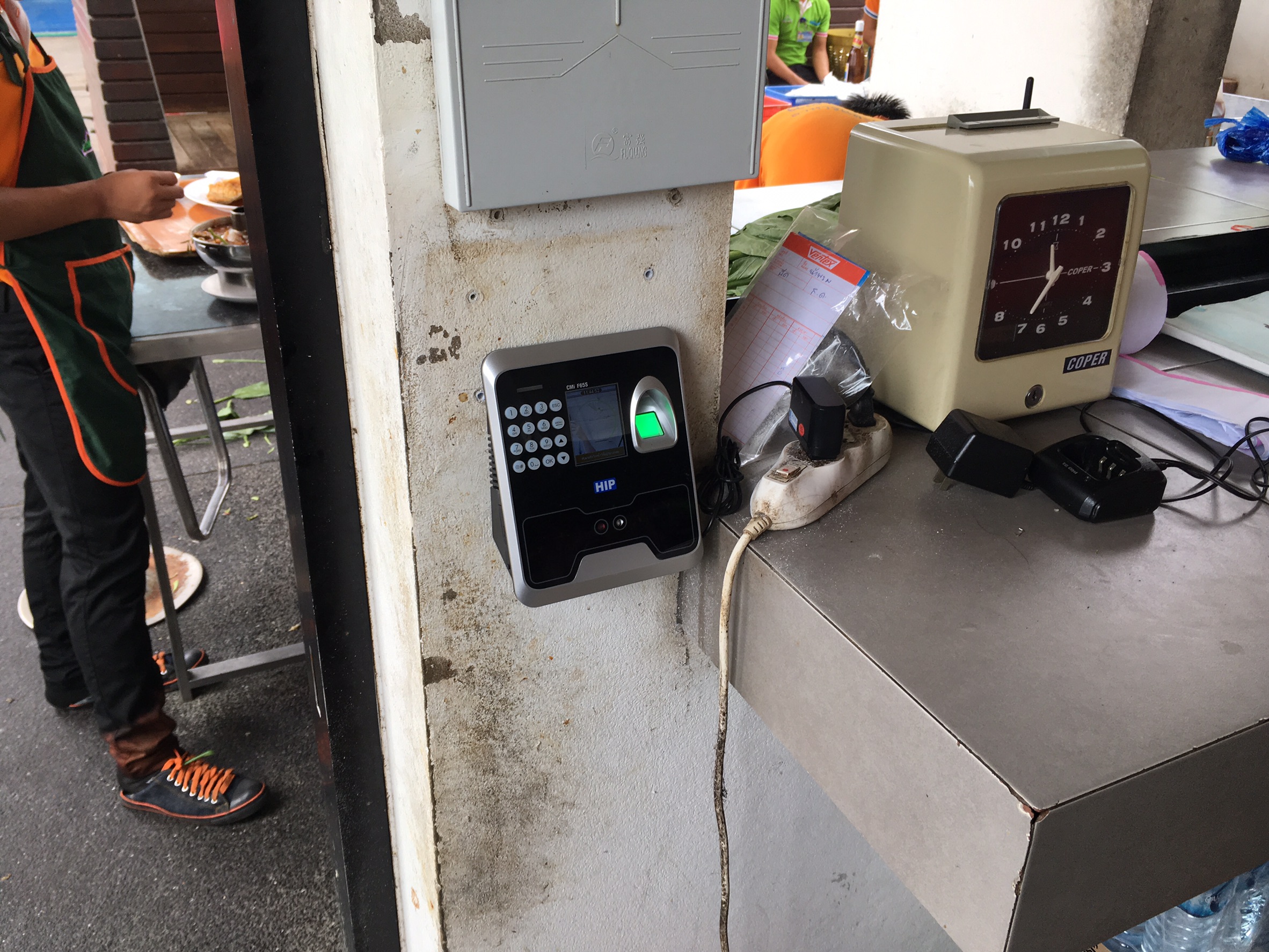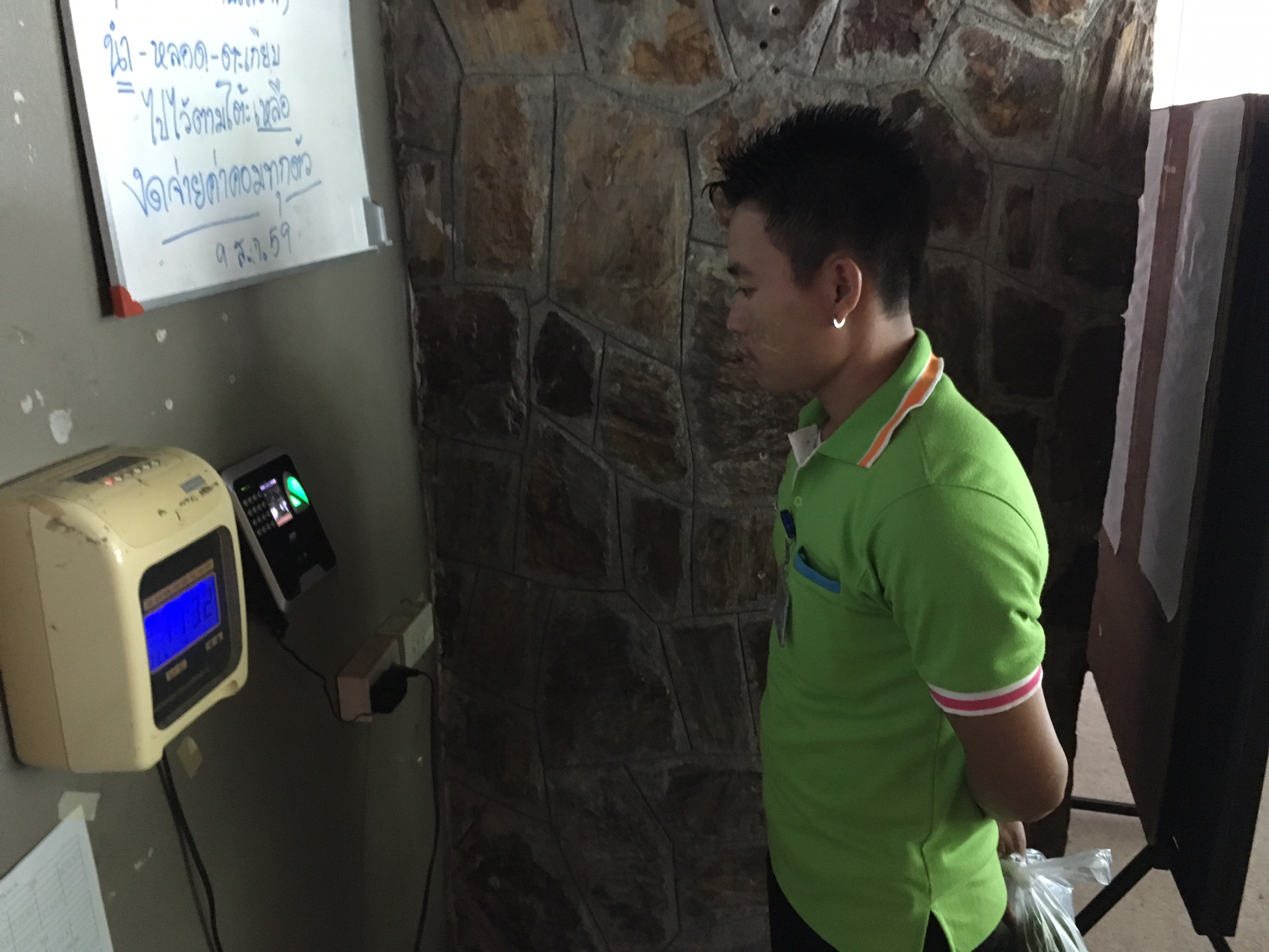 เป็นภาพหน้างานการติดตั้ง เครื่องสแกนใบหน้า ให้กับร้านมุมอร่อย ร้านอาหารดังแห่งเมืองพัทยา ภายใต้การดำเนินงานของ บริษัท โฟร์ซี ซีฟู้ด จำกัด โดยลูกค้าต้องการเปลี่ยนจาก เครื่องตอกบัตร ที่ใช้งานอยู่เป็น เครื่องสแกนใบหน้า เพื่อช่วยให้การบันทึกเวลาทำงานเป็นไปอย่างถูกต้อง โปร่งใส และสามารถประมวลผลคิดค่าแรงได้รวดเร็วมากยิ่งขึ้น